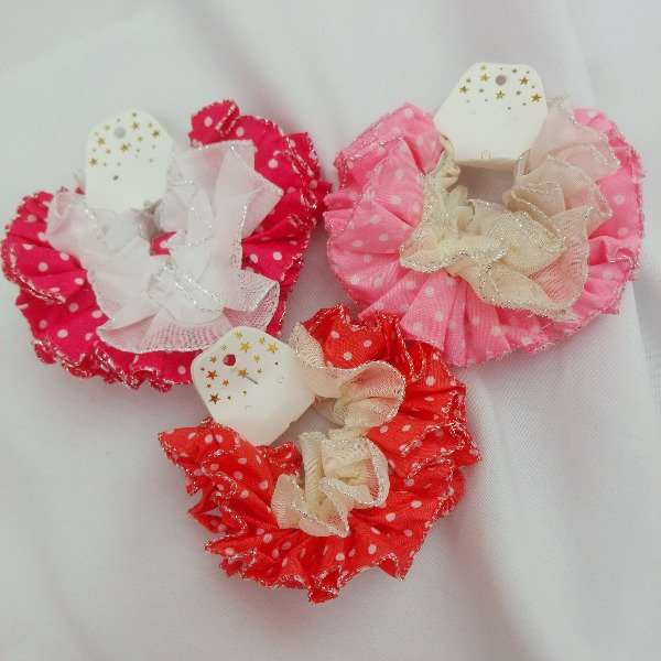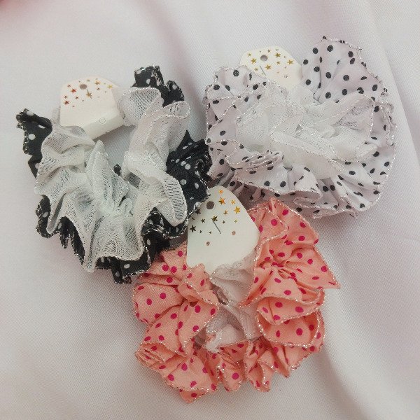 Colita estilo scrunchie de diseño con doble tela, estampadas y con terminación en borde plata