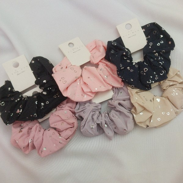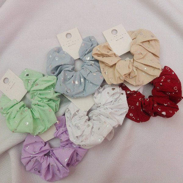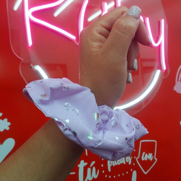 Hermosa scunzi de tamaño XL con estampado y diseño en plateado.