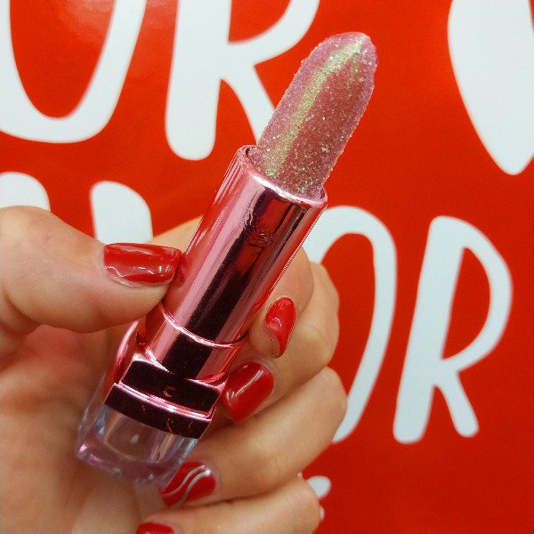 Lapiz labial con brillo con efecto brilloso e intenso.